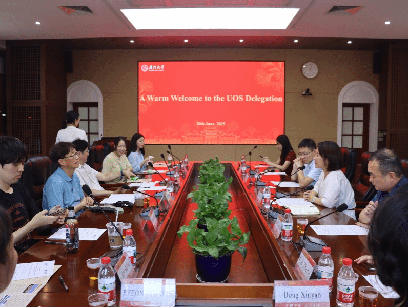 2025年6月30日下午,韩国首尔市立大学国际关系系师生团访问厦门大学国际关系学院/南洋研究院。双方就中美东南亚三角关系等议题进行学术交流。我院副院长张淼副教授主持座谈,国际关系系副主任王昭晖副教授、金向东助理教授及学生代表共同参与交流。韩国首尔市立大学国际关系系师生团由Kim Seokwoo教授和Lim Sunghack教授带队,成员包括3名教职工和12名学生。