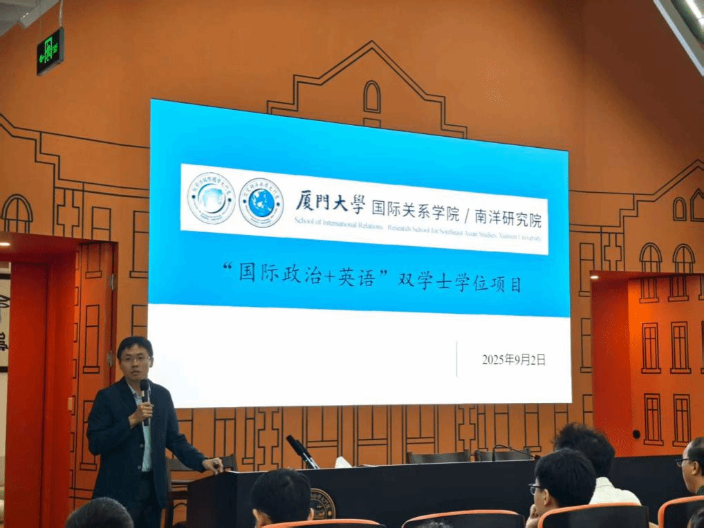 会上,国际关系学院副院长冯立军教授就国际关系学院/南洋研究院的发展历程、师资力量、组织架构、学科优势与人才培养成果进行了系统阐述。他勉励同学们充分利用大一学年的宝贵时光,主动探索学科前沿,积极体验多元课程,在广泛涉猎中发掘自身学术兴趣,为后续的专业选择和长远发展奠定坚实基础。王昭晖副教授重点解读了国际关系学院“国际政治+英语”双学士学位项目的培养目标、课程设置与选拔要求。并鼓励同学们夯实专业基础、提升外语能力,积极把握这一跨学科培养机遇,为成长为高端国际化复合型人才做好准备。