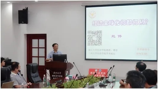 2020年9月16日下午,“南洋问题与全球视野”系列讲座第一讲如期举行。此次讲座嘉宾为浙江大学经济学院赵伟教授,主题为“经济全球化何去何从”。讲座由我院金向东老师主持,吴崇伯教授进行评议。