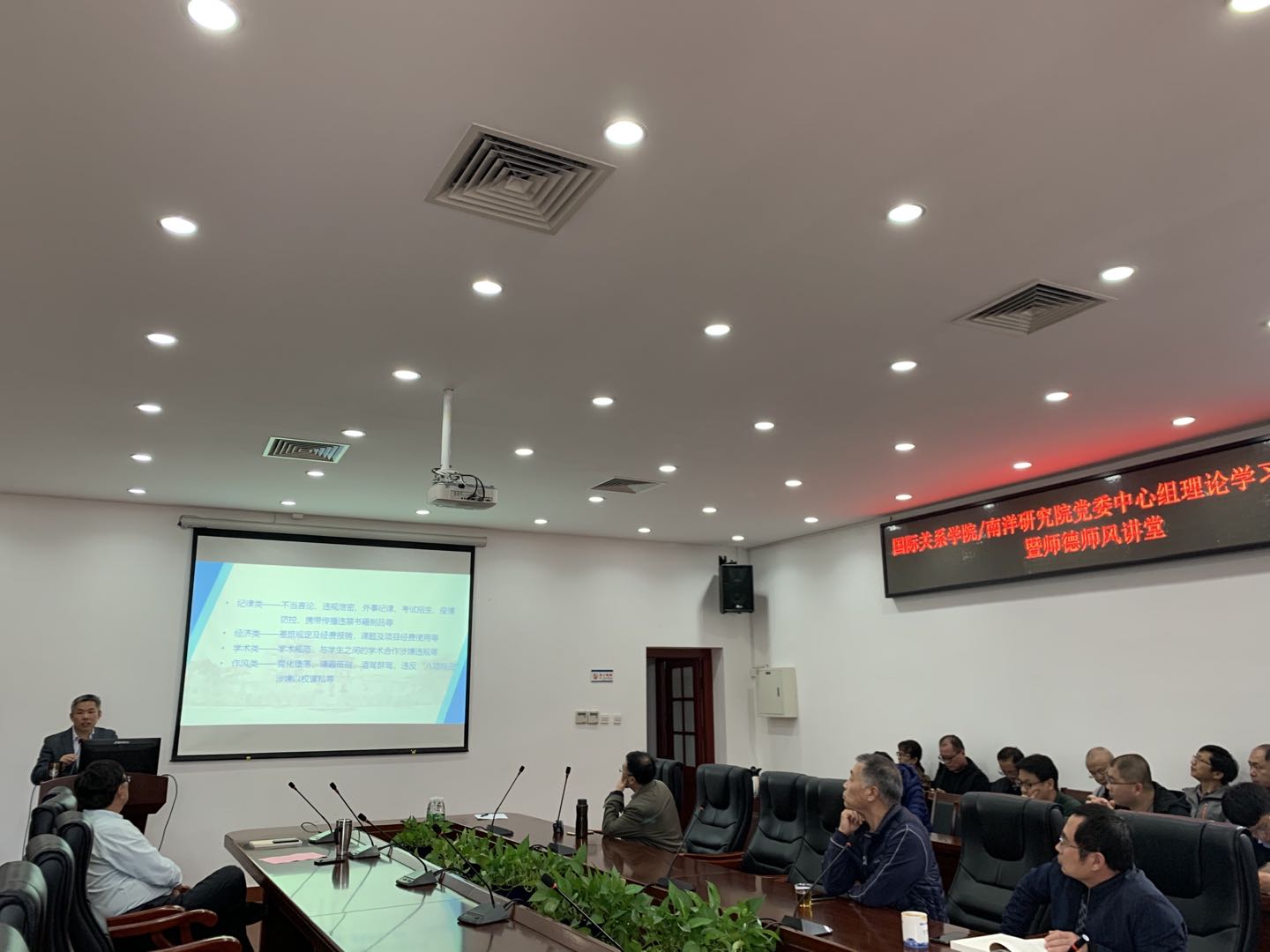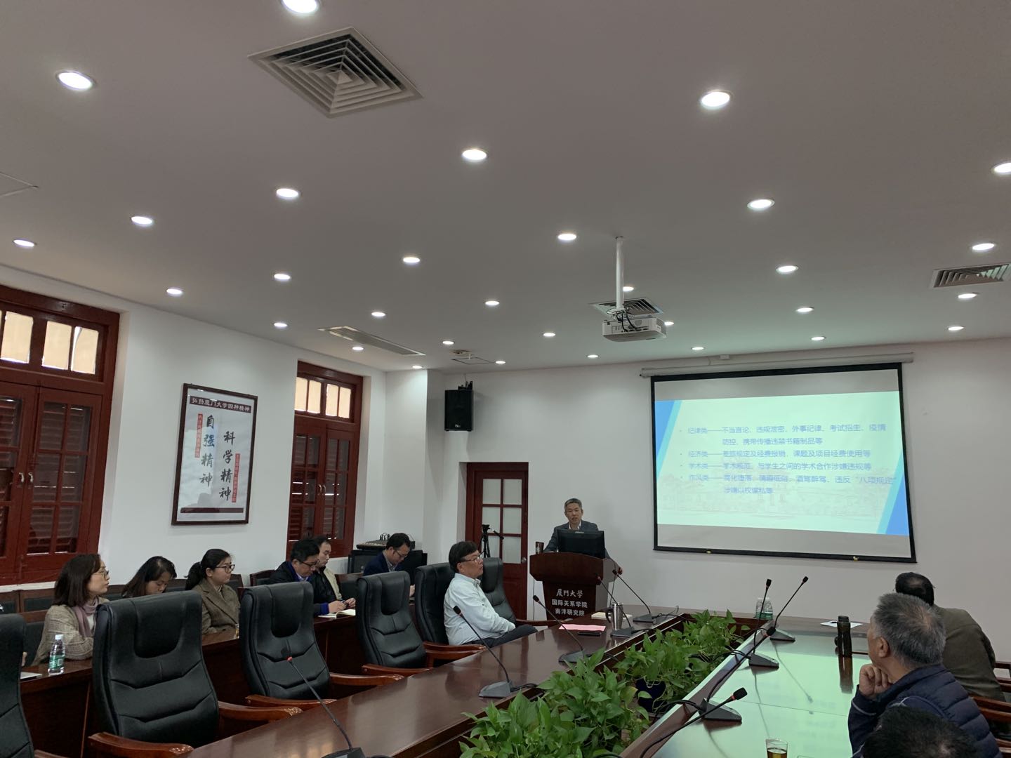 为深入学习贯彻习近平新时代中国特色社会主义思想,全面贯彻党的十九大和十九届二中、三中、四中、五中全会精神,增强“四个意识”,坚定“四个自信”,做到“两个维护”,全面落实校纪委《厦门大学2020年党风廉政建设工作要点》和校党委第三轮巡察整改要求, 2020年12月28日,学院党委副书记、纪检委员陈伟老师为全体教师上了一堂题为“以案说纪”——加强高校师德师风建设“的专题党课。该讲座也作为学院党委中心组理论学习(扩大)暨全体教师的双周政治理论学习。