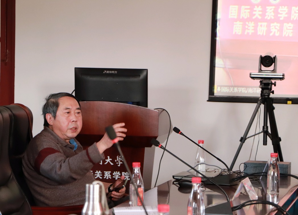 2021年4月6日下午,厦门大学国际关系学院/南洋研究院配合百年校庆举办的“拜登政府对华态势考察”南强专题讲座,在南安楼301-3会议室顺利举行。本次讲座的主讲嘉宾为国务院参事、中国人民大学国际关系学院时殷弘教授,讲座由我院院长李一平教授主持。