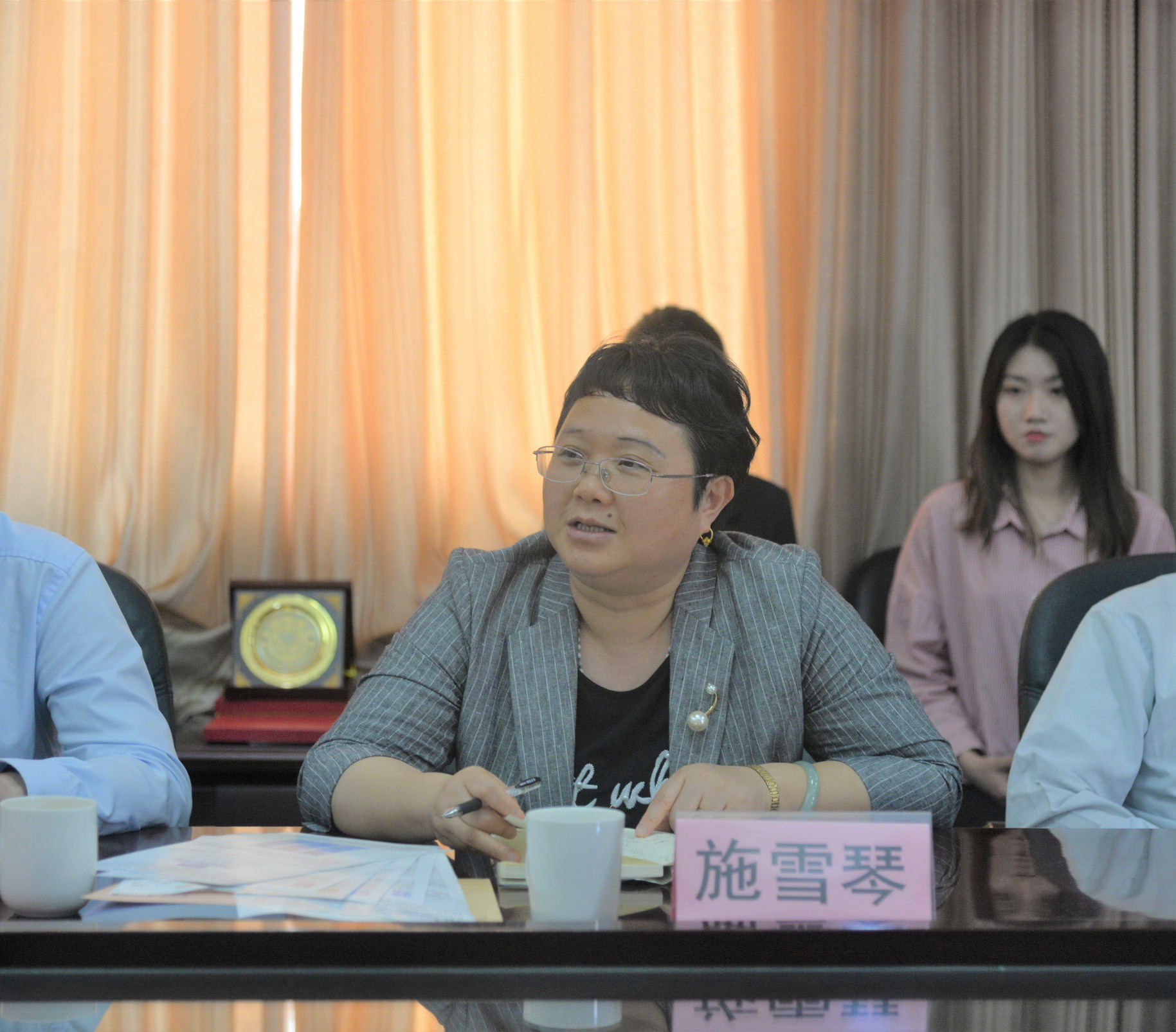 施雪琴副院长在致辞中称赞了南安一中开拓创新的办学理念与卓越的办学质量。展望两校合作,她说:“厦门大学刚刚走过百年,正在开启新百年征程,在新征程开启之初,厦门大学国际关系学院要紧跟新时代,迎接挑战,抓准契机,走进优质生源中学,与优质高中进行对接,大力宣传学院办学特色与成绩,吸引更多优秀学生选择厦大,选择国际关系学院。”施雪琴副院长对厦门大学与南安一中合作提出三点期望:第一,厦门大学与南安一中的合作是强强联合,双方共同促进,共同发展;第二,国际关系学院教学与研究特色包含侨务研究,南安是中国著名侨乡,双方应该以侨搭桥,加强联系与合作;第三,学院办学包容开放,欢迎南安一中优秀学生报考。