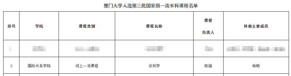 2025年12月17日,中华人民共和国教育部发布了《教育部关于公布第三批国家级一流本科课程认定结果的通知》,厦门大学国际关系学院陈锴老师主讲的“谈判学”课程成功入选国家级一流本科课程(线上一流课程)。这不仅是我院首门国家级一流本科课程,也是持续推进本科课程高质量建设、深化教学改革取得的又一标志性成果。