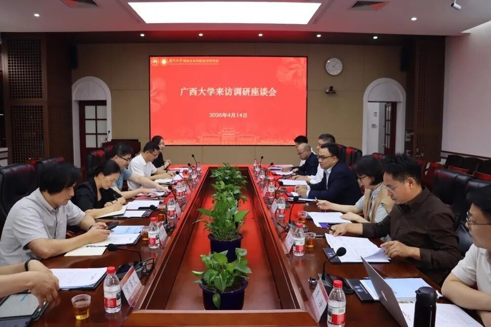 2026年4月14日,广西大学科研院副院长、社会科学处处长(兼)李海波,中国—东盟研究院执行院长梁运文等一行到访厦门大学国际关系学院/南洋研究院,围绕东南亚区域国别研究、学科建设、国际传播等主题开展调研座谈。厦门大学国际关系学院/南洋研究院院长高艳杰主持座谈会,副院长沈燕清及相关系所、中心负责人、教师代表参会。