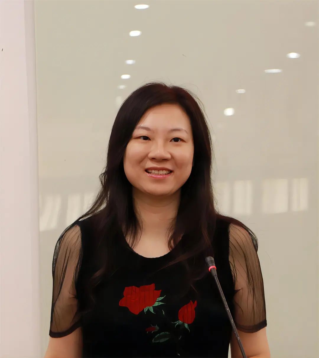 杨芳老师作为教师代表发言。她向全体新生讲述了如何在大学时期点燃奋斗之光,书写青春底色,并提出四点建议:第一,积极参与体育运动,增强体质;第二,好读书,读好书,结交良友;第三,脚踏实地,不畏困难与挫折,不受诱惑与干扰,积极投身学习与实践;第四,“立己达人”,既加强自我修养,自立自强,培养高尚品德,又关爱他人,回报社会,与同学们一同发展和进步。