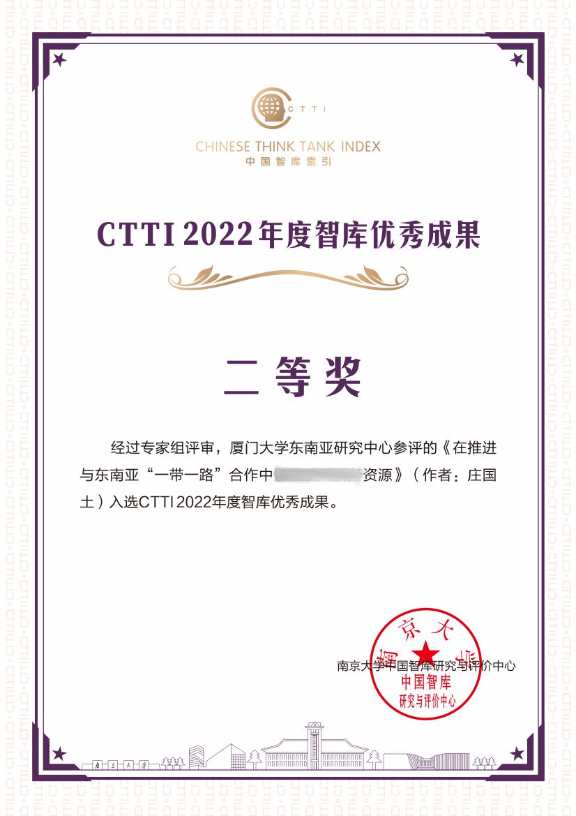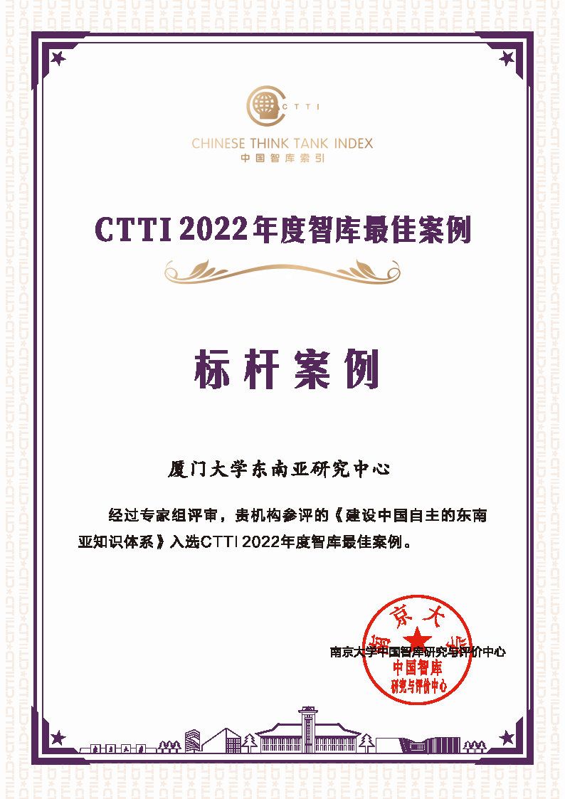 厦门大学东南亚研究中心获2022CTTI智库优秀成果多项表彰