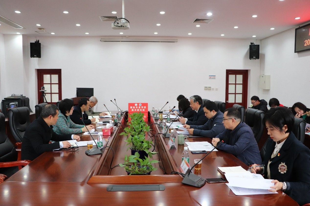 按照校党委统一部署,结合学院工作安排,2月14日上午,国际关系学院/南洋研究院2022年度中层党员领导干部民主生活会在南安楼301(3)会议室召开。副校长邓朝晖,校纪委委员、学生工作处处长李峰,民主生活会督导组第一组副组长、校纪检监察机构第一纪检监察室主任房太伟和学院党建联络员潘宝柱到会指导。党委书记毛通文主持会议。学院领导班子成员参加会议,系级领导及科级干部列席会议。