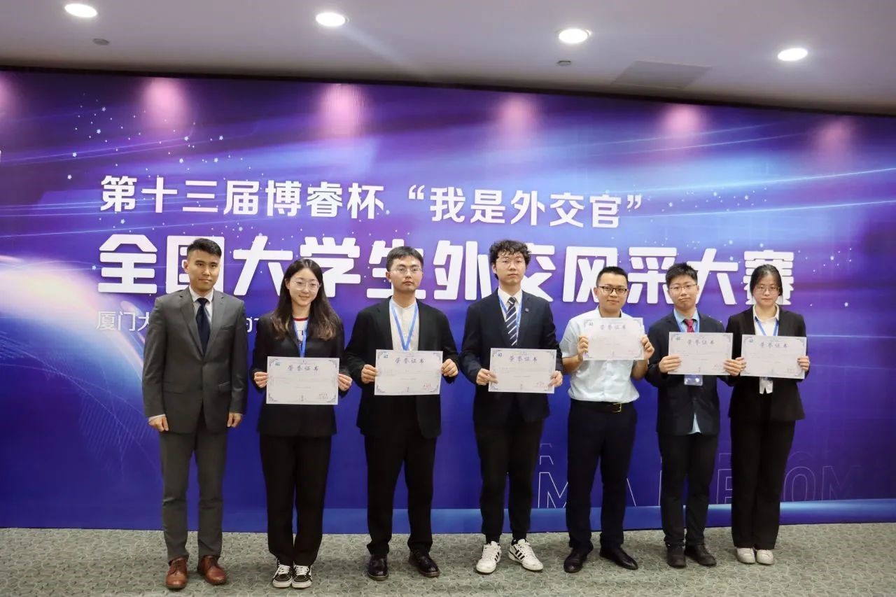 经过现场评委的认真评审,最终,外交学院代表队斩获本届大赛一等奖,厦门大学、中山大学队获得二等奖,中国人民大学、同济大学、武汉大学代表队获三等奖,外交学院代表队的陶钺千、武汉大学代表队的李思源分别获得本场比赛的“最佳外交官”和“最佳新闻官”称号。
