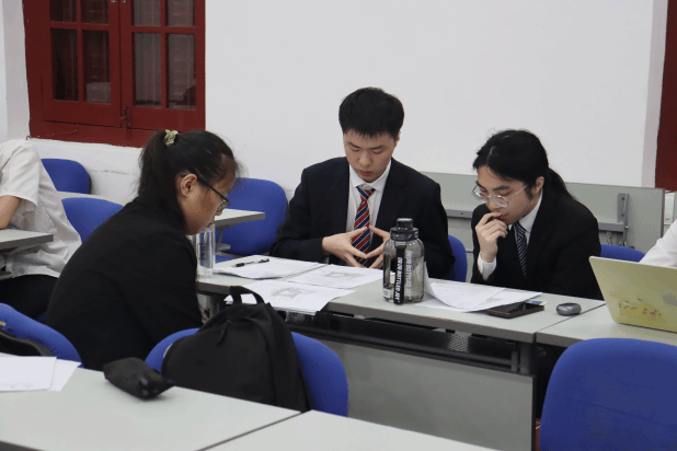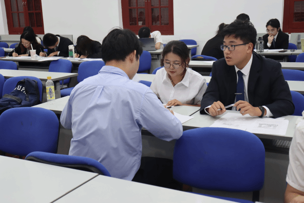 本次复赛采取了模拟多边外交的比赛形式。参赛选手们被随机分为5个队伍,每队由2名外交官和1名新闻官组成。在比赛中,选手们接到了一项挑战:针对某一具体国际事件进行立场分析和决策表态。面对紧张的时间限制和复杂的国际背景,选手们沉着冷静、分析透彻,各队成员之间的沟通与合作也显得尤为关键。