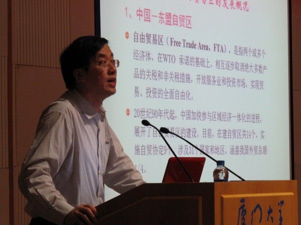 为本次活动带来首场讲座——透视中国—东盟自由贸易区——的是王勤教授。他从“中国东盟自由贸易区的发展状况”“东盟自由贸易区的战略意义与经济效应”“东盟自由贸易区的框架内容”“中国参与中国——东盟自由贸易区的对策”四个方面深入阐述了中国东盟自由贸易区的相关问题,可谓深入浅出。在场同学都十分认真的聆听了本次讲座,在互动环节中,同学们争先恐后地提出自己的疑问,而王勤教授则一一给与了细致耐心的讲解,他的儒雅博学深深感染了在场的每一位学子。最后,本次开幕式在热烈的掌声中画上了一个圆满的句号,而更多的精彩才刚刚开始。