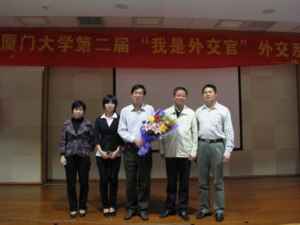 4月11日晚七点,“我是外交官”外交系列活动开幕式暨首场讲座在漳州校区主楼小报告厅隆重举行,漳州校区管委会副主任黄田,国际关系学院副院长王勤教授,国际关系学院党总支副书记黄俊清,人文学院团委副书记黄佳佳,经济学院辅导员陈勇,软件学院辅导员刘锦锗,国际关系学院团委书记郑碧娇老师出席了本次开幕仪式。