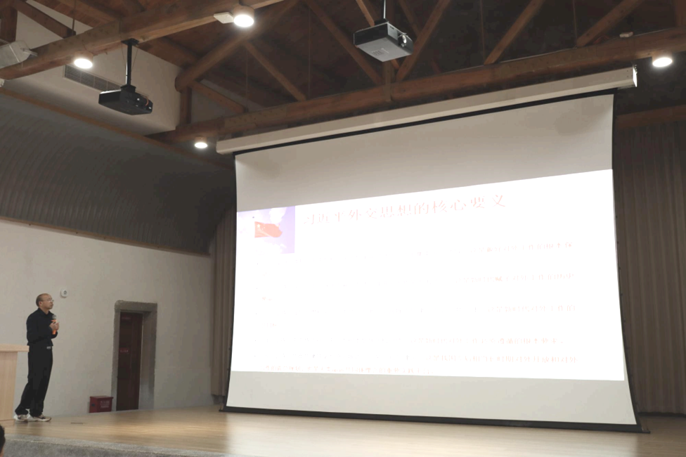 研讨会伊始,教师党支部书记王付兵老师给全体与会人员上了一节生动的党课,他以习近平外交思想的重要地位与核心要义为基础,介绍了习近平总书记关于侨务工作的重要论述。他特别指出,习近平总书记根据党和国家事业发展需求和时代趋势,结合工作实际,继承发展了党的海外统战工作方针政策,鲜明地提出了凝聚侨心侨力同圆共享中国梦的新时代侨务工作主题,突出“根、魂、梦”的新时代侨务工作主线,明确了“三个有利于”的工作原则和“大侨务”的新时代工作格局,推动构建人类命运共同体,为新时代侨务工作指明了方向。