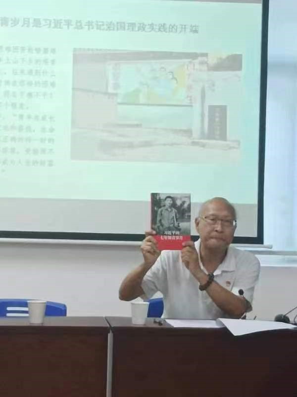 《习近平的七年知青岁月》一书以访谈的形式讲述了习近平总书记在梁家河插队的故事。曾是知青的陈老师动情地讲道:“这本书访谈的对象都是当年与他同吃同住同劳动的乡亲和知青,聆听那些珍贵的沉淀在流年岁月之中的记忆,仿佛我也正在其中。跳蚤关、饮食关、生活关、劳动关、思想关……关关难过关关过。作为知青一员的习近平在逆境中不怨天尤人,在低谷中不屈不挠,凭着坚定的理想信念,一步一个脚印,艰苦奋斗,完成了人生一次次的洗礼。”陈老师在授课中讲到,梁家河的七年知青岁月是习近平总书记治国理政实践的开端。这段经历让总书记意识到,唯有实践,才能认识到实际;唯有实践,才能做到实事求是。