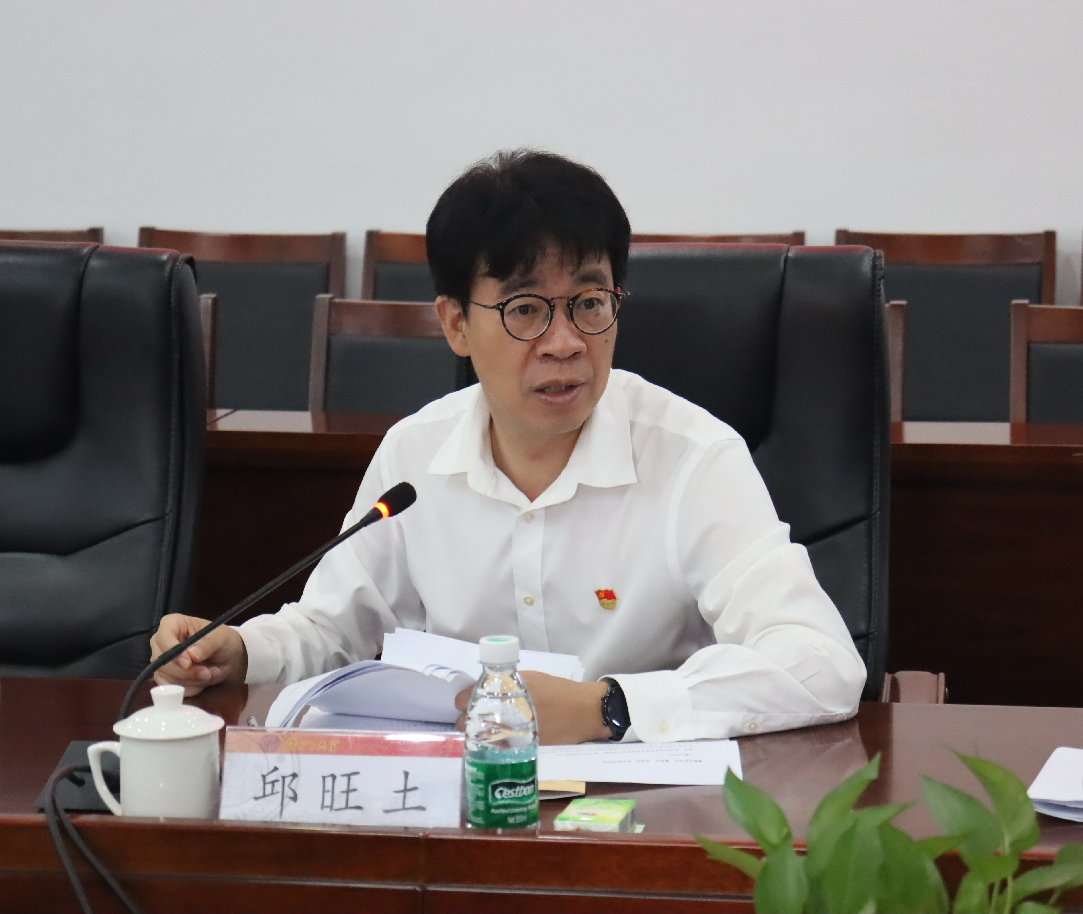 接着,召开了师生座谈会,邱旺土代表学院党委从学院基本情况、党纪学习教育进展、党建和事业发展深度融合的工作思考等方面汇报了学院党建工作。