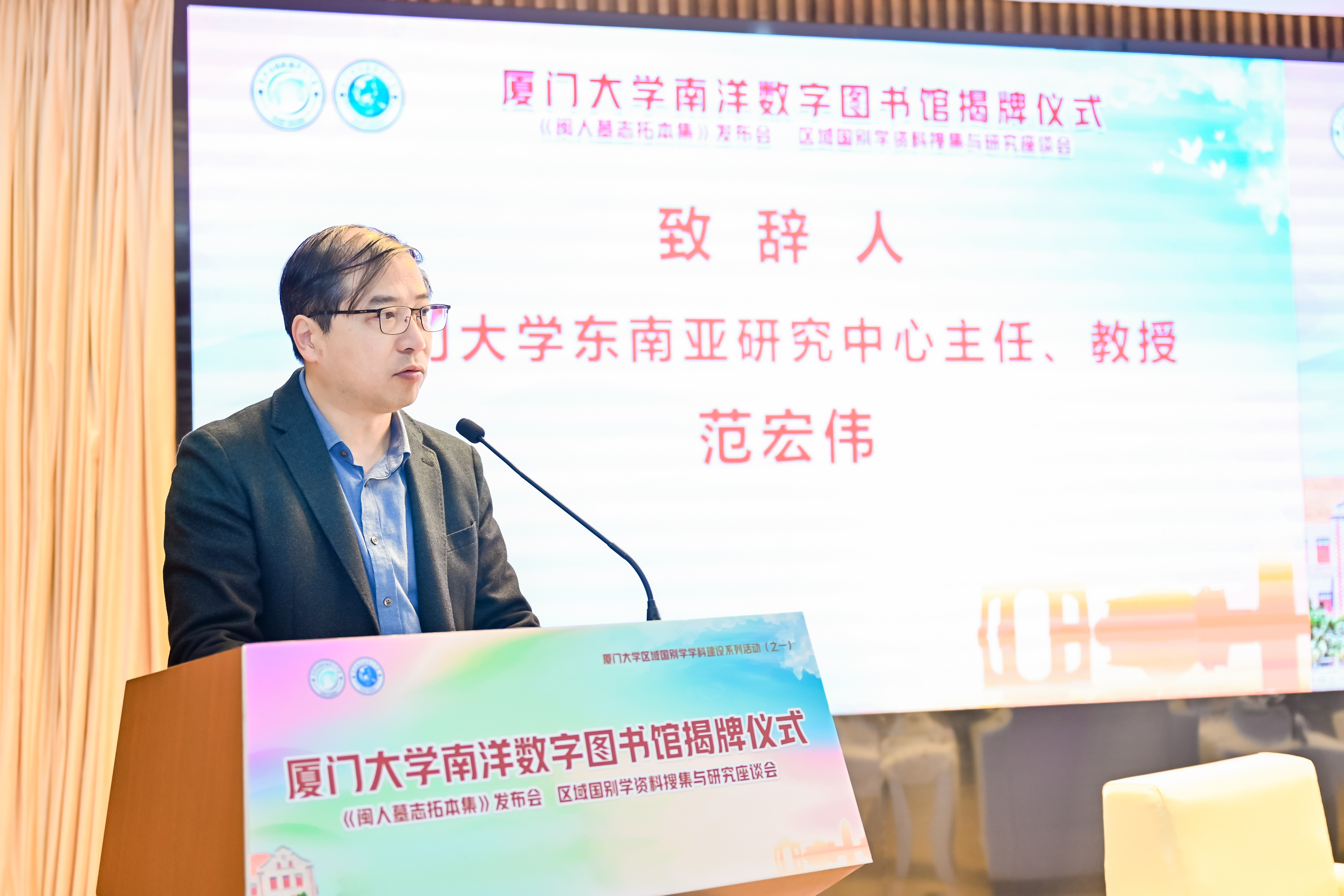 本次活动共分为厦门大学南洋数字图书馆揭牌仪式、《闽人墓志拓本集》发布会、区域国别学资料搜集与研究座谈会三个环节。专家学者围绕区域国别学的理论与实践展开深入探讨,分享各自的研究成果和心得体会。