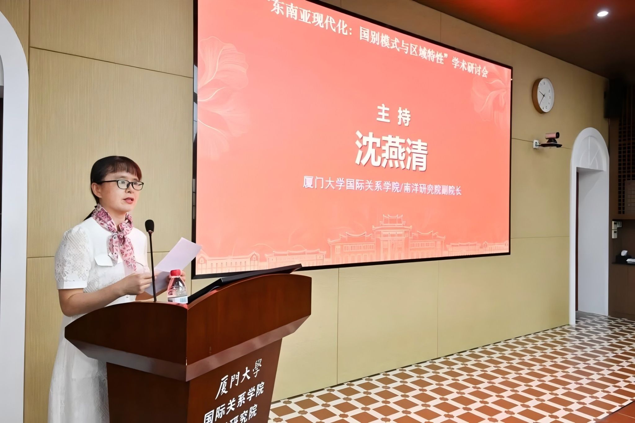 研讨会开幕式由厦门大学国际关系学院/南洋研究院副院长沈燕清主持,厦门大学国际关系学院/南洋研究院院长高艳杰和中国社会科学院亚太与全球战略研究院东南亚研究中心主任许利平分别致辞。高艳杰院长在致辞中指出,这次会议完全聚焦东南亚,是一次真正同行的会议,相信大家会有新的收获。此次研讨会围绕“现代化”问题进行多学科的学术探讨,促进不同观点的碰撞与融合,为区域国别研究提供新的思路与方法。许利平主任在致辞中强调,东南亚现代化和中国式现代化既有相似之处,同时又各具特色。希望与会专家通过探讨东南亚现代化的特性和路径,共同推进中国和东南亚共同现代化,为全球南方群体性崛起贡献中国智慧。