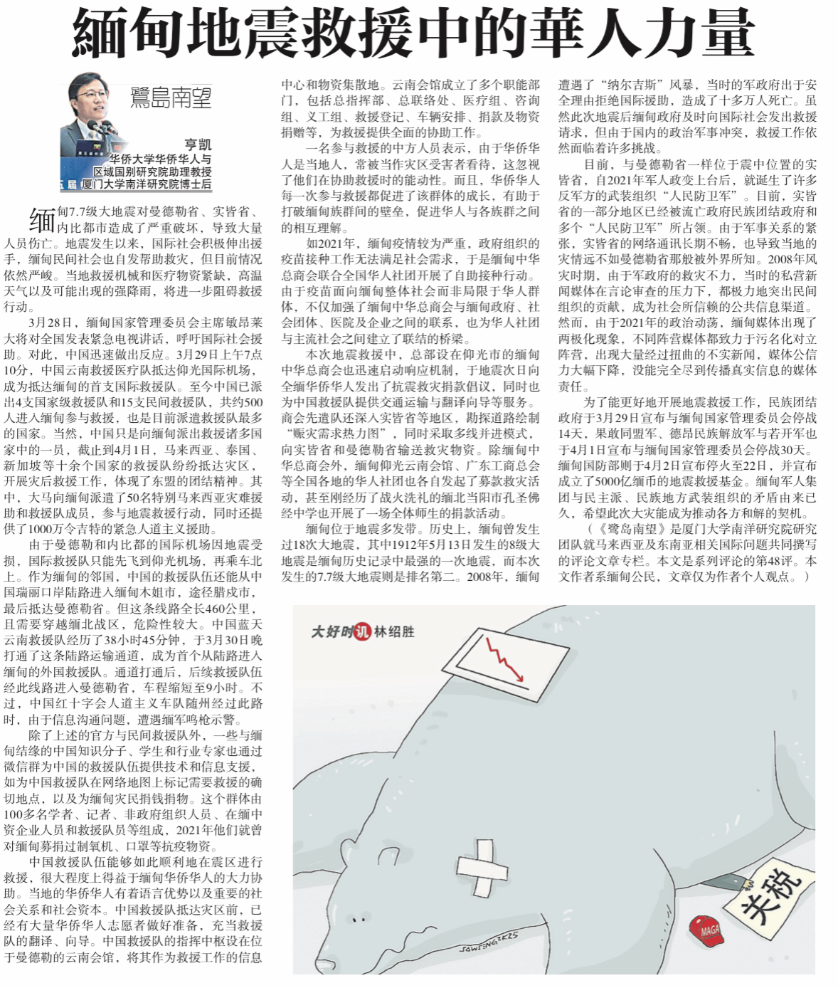 【星洲日报】《鹭岛南望》专栏:亨凯 | 緬甸地震救援中的華人力量
