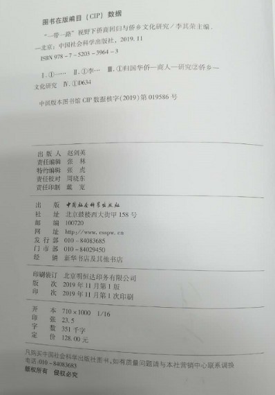 2、我所王付兵老师在论文集《“一带一路”视野下侨商回归与侨乡文化研究》上发表题为《1910年至20世纪70年代新马闽籍华人的方言群分布》的论文,论文集由中国社会科学出版社出版,论文集信息及目录如下图。