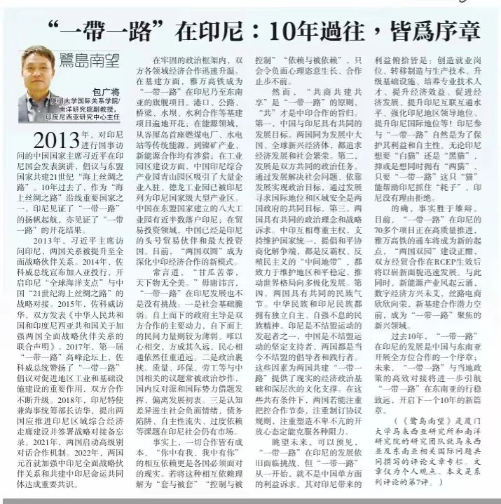 【星洲日报】《鹭岛南望》专栏:包广将 | “一带一路”在印尼:十年过往,皆为序章