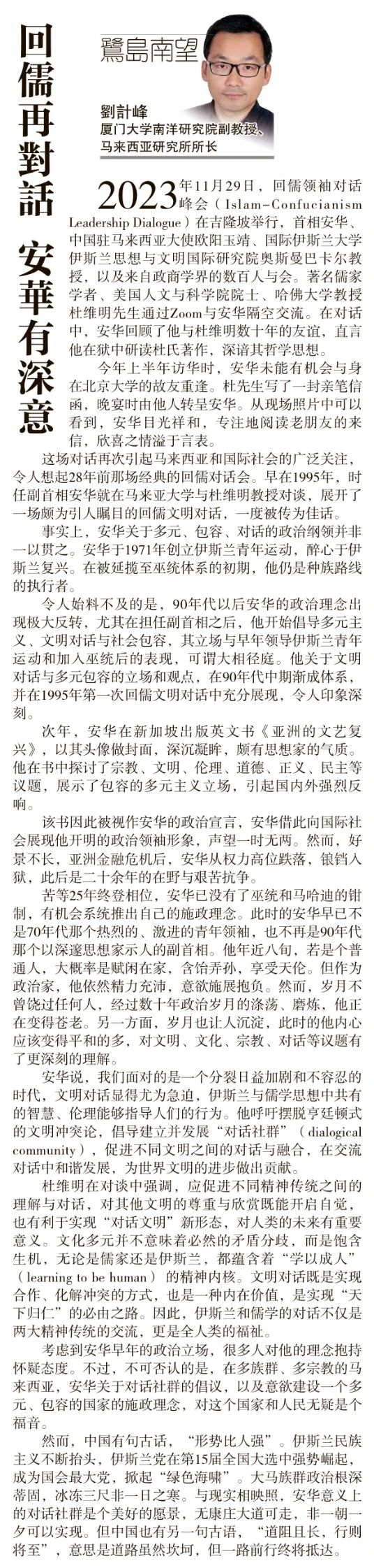 【星洲日报】《鹭岛南望》专栏:刘计峰 | 回儒再对话 安华有深意