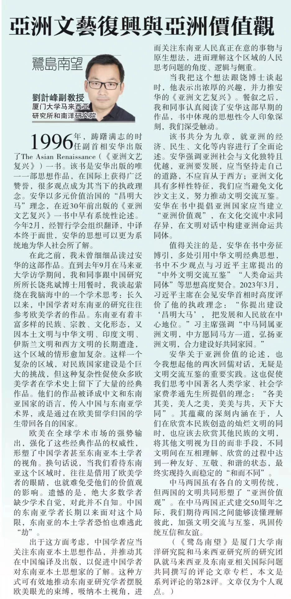 【星洲日报】《鹭岛南望》专栏:刘计峰 | 亚洲文艺复兴与亚洲价值观