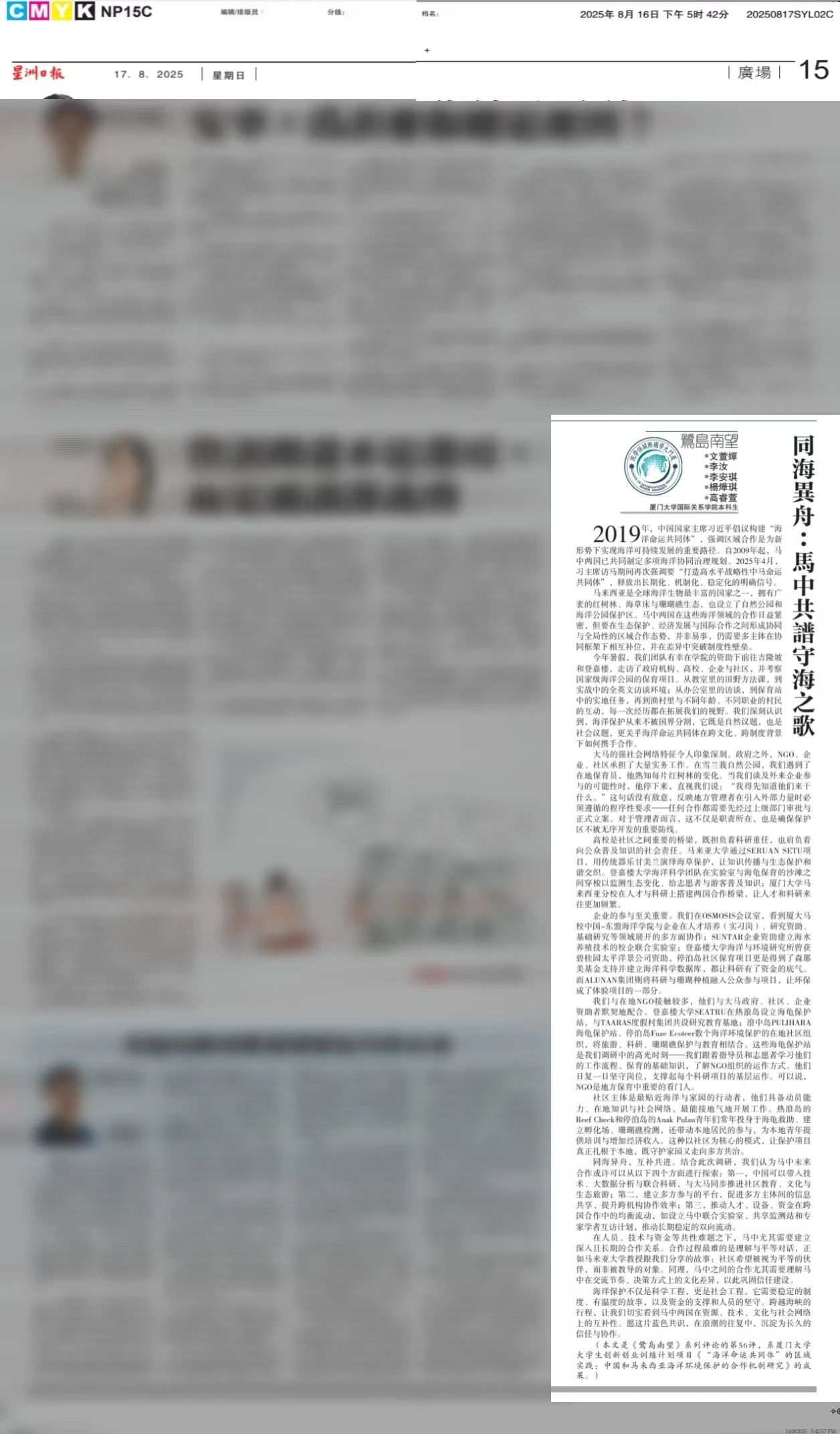 【星洲日报】《鹭岛南望》专栏 | 同海異舟:馬中共譜守海之歌