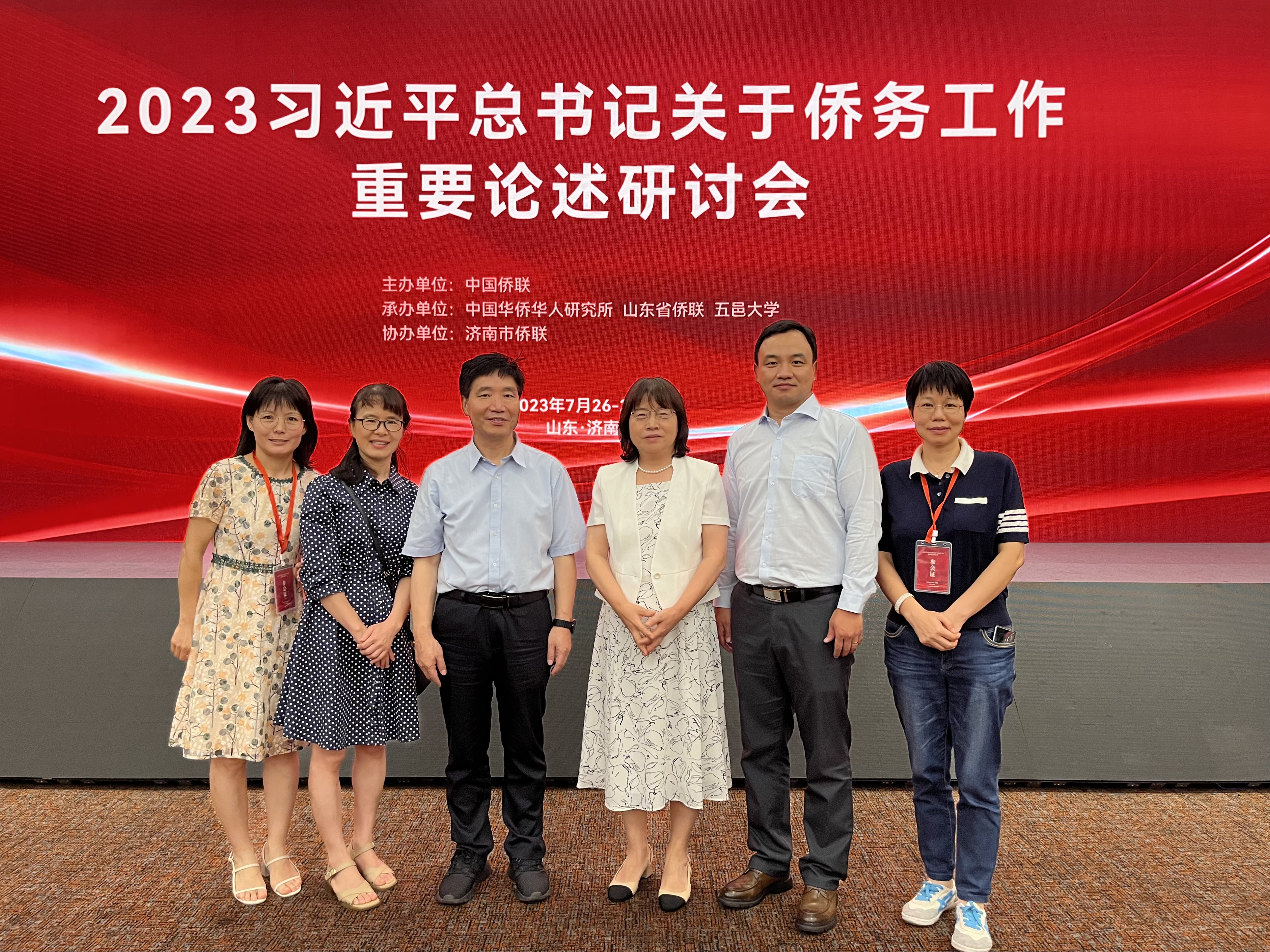 2023年7月28-29日,中国华侨历史学会八届三次理事会会议暨“2023习近平总书记关于侨务工作重要论述研讨会”在山东济南召开,来自中央统战部、全国人大华侨委员会、全国政协港澳台侨委员会、致公党中央联络部、中国侨联及地方各级侨联、中国华侨华人研究所等相关部门的同志,国内高校的专家学者、部分侨商侨领代表共一百余人参会,印尼研究中心高艳杰教授和沈燕清教授出席此次会议。会议通过了《中国华侨历史学会八届三次理事会工作报告》《中国华侨历史学会八届三次理事会卸免、增补理事名单》,高艳杰教授被增补为学会理事。在“2023习近平总书记关于侨务工作重要论述研讨会”环节,高艳杰教授作了题为《国际关系视野下的华侨华人研究》的主旨发言,受到与会者的充分肯定。