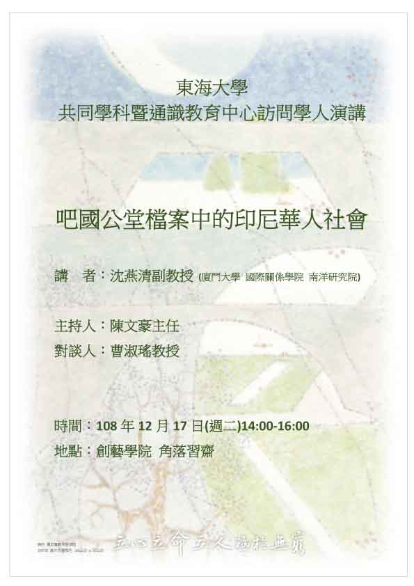印尼研究中心沈燕清老师在东海大学通识教育中心举行“吧国公堂档案中的印尼华人社会”的演讲