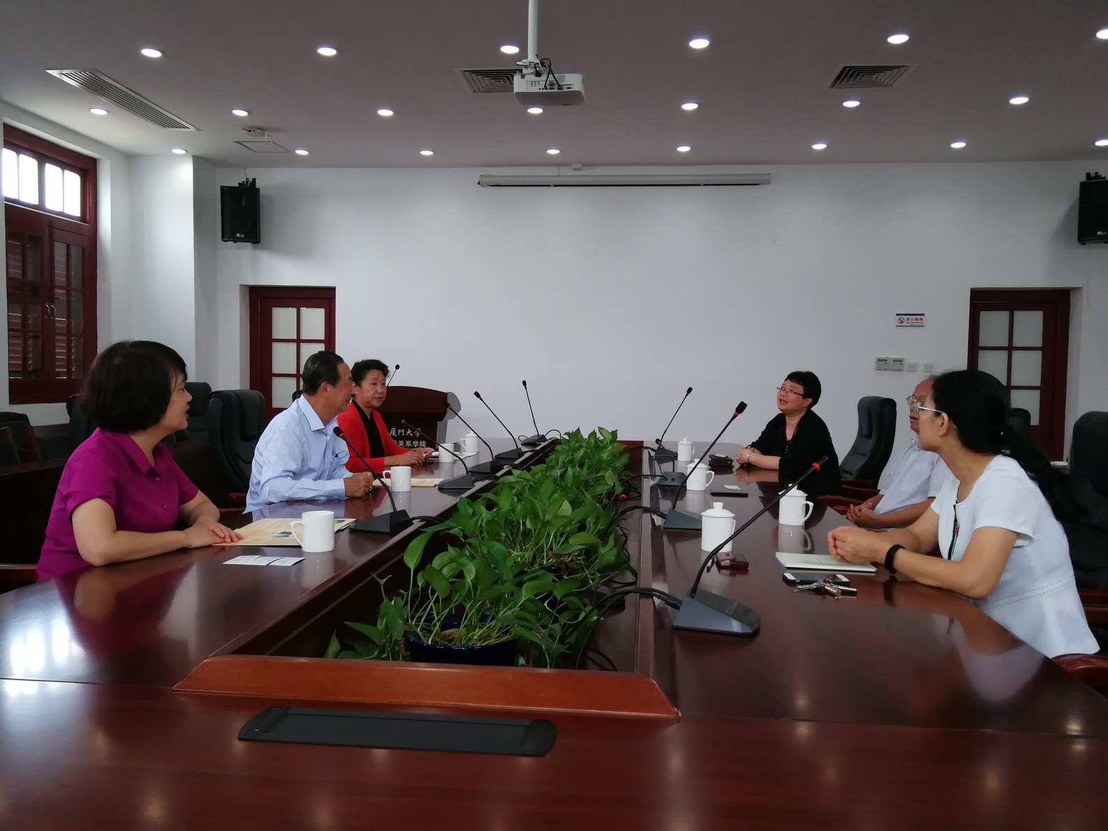 6月22日上午,印尼知名侨领、印尼新中三语学校董事长何文金、新中教育总监彭则翔女士、福清统战部张秀霞主任一行莅临我院印尼研究中心,与我院李一平院长、施雪琴副院长、林梅老师、沈燕清老师展开座谈交流。何文金先生祖籍福建福清,是印尼知名侨领、企业家、慈善家,现任世界福清社团联谊会第八届第一常务副主席、印尼福清社团名誉主席,同时也是印尼著名华文学校印尼泗水新中三语学校的创办者。在座谈会上,李一平院长首先向何文金先生等人介绍了我院从1956年建所至今63年的发展历程及我院学术研究的传统与特色。新中教育总监彭则翔女士则简要介绍了印尼新中三语学校的教学特色及其取得的优异成绩。福清统战部张秀霞主任则对何文金先生倾资兴办华文教育、大力传承中华文化的善举表达了钦佩与敬仰之情。座谈会上,双方还表达了今后加强交流与合作的愿望。