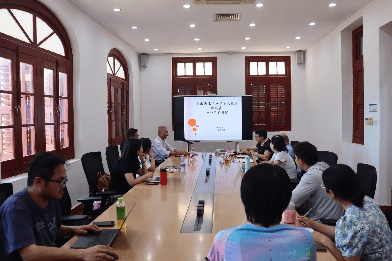 2025年7月3日下午,南洋问题与全球视野系列讲座第八十讲、华侨华人与国际移民系列第九讲在厦门大学南安楼301-3会议室举行。本次讲座特邀厦门大学博士、现任马来西亚维护华教联合会主席、马来西亚厦门大学校友会副主席、马来西亚霹雳育才独立中学总务兼教务委员会主任、马来西亚新纪元大学学院华文教育研究院院长及马来西亚华教研究会秘书长Ong Swee Kok(王瑞国)博士担任主讲人,主题为“来西亚华族与华文教育的发展:一个历史的考察”。Ong Swee Kok(王瑞国)博士长期致力于马来西亚华文教育事业,曾任马来西亚华校董事联合会总会(董总)策划、会务、组织等局行政主任与首席执行长;《华教导报》编辑主任;《华教发展与研究》编辑委员会主任等职。在华侨教育研究领域有诸多成果,主要论文包括《在多元文化社会中的马来西亚华文教育》、《董总与马来西亚华文教育》、《马来西亚华文中学的改制与复兴——以霹雳州为例(1962-1985)》等。