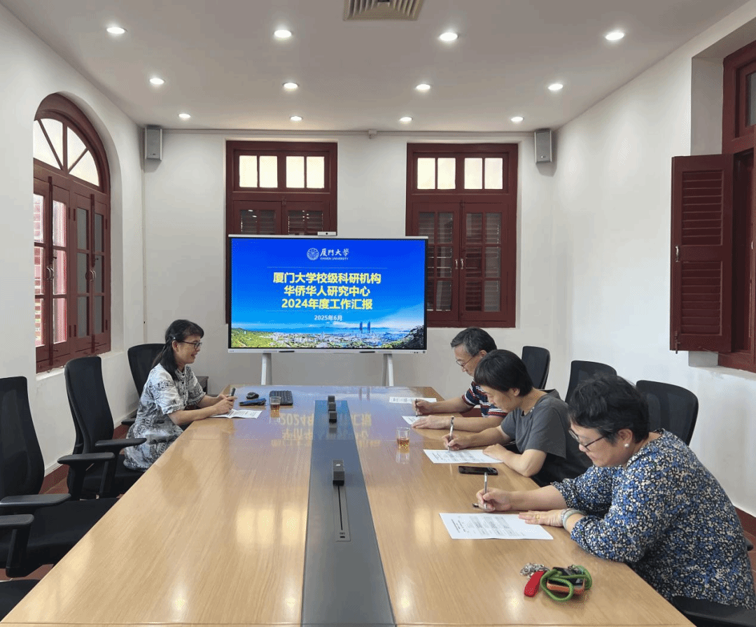 为深入贯彻落实学校关于科研机构建设的工作要求,全面总结建设经验,以评促建,谋划未来发展,2025年6月24日,我院召开校级文科研究机构华侨华人研究中心2024年度考核评议会,中心主任沈燕清教授汇报中心工作,特邀施雪琴教授、王望波副教授、闫森副教授组成评审小组,对中心年度工作进行综合考评。