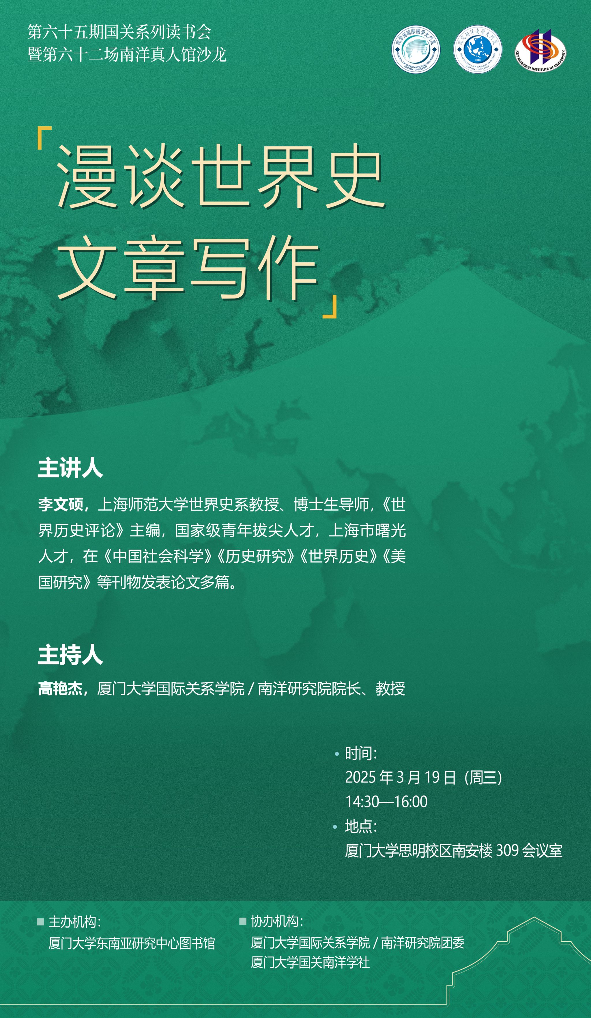 【活动预告】第六十五期国关系列读书会暨第六十二场南洋真人馆沙龙 | 李文硕:漫谈世界史文章写作