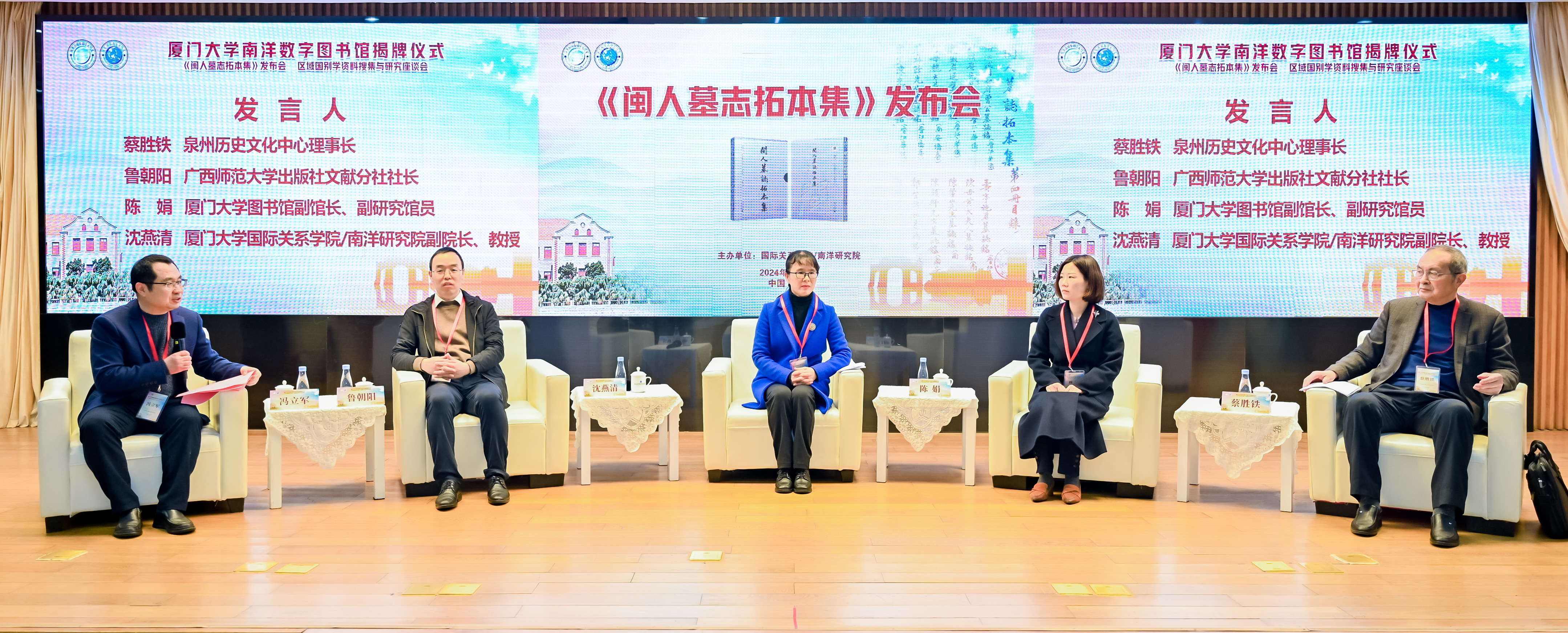 本次活动共分为厦门大学南洋数字图书馆揭牌仪式、《闽人墓志拓本集》发布会、区域国别学资料搜集与研究座谈会三个环节。专家学者围绕区域国别学的理论与实践展开深入探讨,分享各自的研究成果和心得体会。