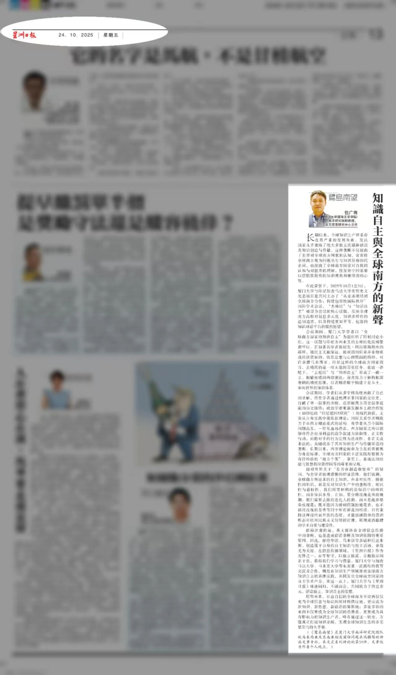【星洲日报】《鹭岛南望》专栏:包广将 | 知识自主与全球南方的新声
